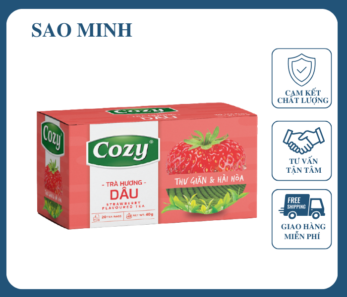 • Trà túi lọc Cozy dâu rất thơm ngon. Mang hương vị đậm đà  vẫn giữ được vị chát môi, ngọt ở họng khi thưởng thức trà.