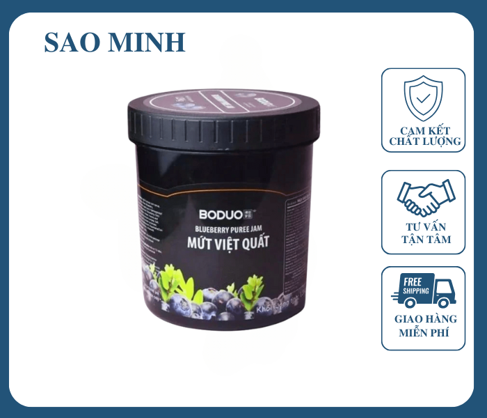 - Mứt Việt Quất Boduo được chiết xuất từ những trái Việt Quất tươi chín mọng. Từng thớ thịt Việt Quất hòa quyện cùng với đường mía tự nhiên. Với mứt Việt Quất Boduo bạn có thể dễ dàng pha chế nên nhiều loại đồ uống. Vị ngọt tự nhiên của mứt Việt Quất giúp cho đồ uống của bạn thêm hấp dẫn.
