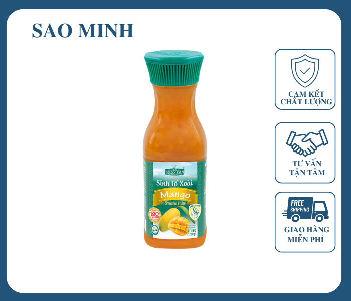Sinh tố Golden Farm Xoài 1L vị xoài nguyên liệu được dùng để pha chế nước sinh tố xoài hương vị thơm ngon và chất lượng, bổ dưỡng.